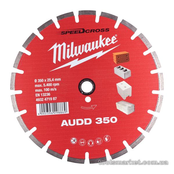 Діамантовий диск AUDD 350 (1 шт) Диски AUDD найкраще підходять для роботи з твердими та абразивними матеріалами, висока продуктивність досягається при роботі з бетоном та звичайними будівельними матеріалами. Універсальні алмазні диски для роботи з будь-якими матеріалами Сегменти: 10 мм сегменти забезпечують тривалий термін служби. Велика концентрація алмазної крихти та її спеціальний розподіл на диску забезпечують високу продуктивність. Прецизійне виготовлення диска: Диск виготовляється з прецизійною точністю та піддається термічній обробці, що забезпечує міцність та стійкість його до нагрівання. Охолоджувальні отвори: Забезпечують ефективне охолодження сегментів, що продовжує термін служби диска та дозволяє користувачам працювати довше та швидше у порівнянні зі звичайними дисками. Низький шум: Завдяки ідеальному балансу диска зменшується шум при роботі. Низька вібрація: Спеціальна конструкція знижує коливання диска та зменшує вібрацію під час роботи. AUDD найкраще підходить для роботи з пінобетонними блоками, бетоном, вапняком. Серія AUDD Внутрішній діаметр диска (мм) 25.4 Висота сегмента (мм) 10 Діаметр диска (мм) 350 Ширина різу (мм) 2.6 Гнейс немає Граніт ні Штучний камінь немає Штучний камінь (твердий) немає Керамограніт немає Пінобетон так Порфір немає Черепиця бетонна так Черепиця глина допустимо Шифер допустимо Асфальт допустимо Базальт так Бетон (м'який) так Бетон (середньої щільності) так Бетон (твердий) допустимо Бетон (армований) допустимо Цегла (м'яка) так Цегла (середньої міцності) немає Цегла (високоміцна) немає Керамічна плитка немає Протон так
