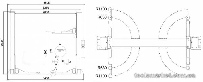Двухстоечный электрогидравлический подъемник ПГА-3500-Е