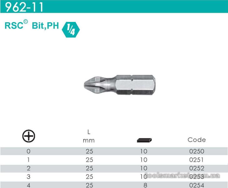→ Бита крестовая PH0 1/4" L=25мм 10шт. RSC тип