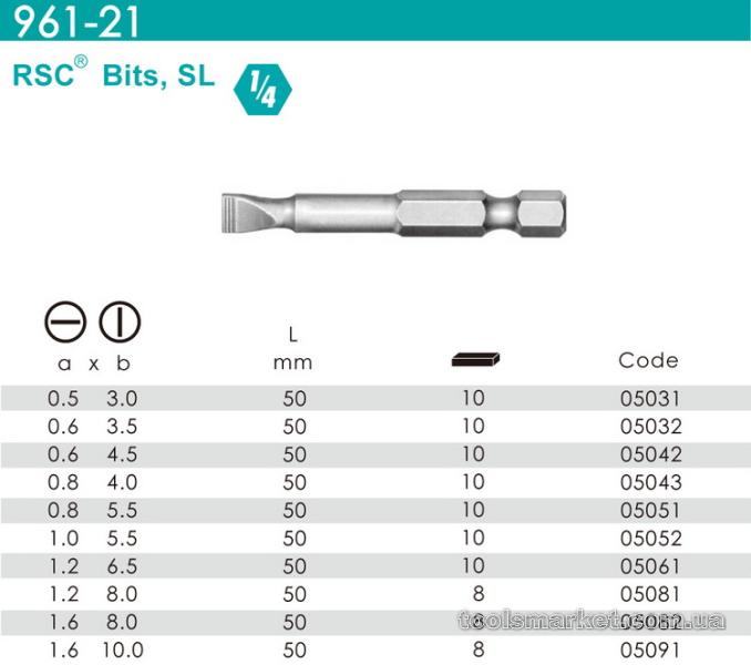 → Бита шлицевая SL 5.5мм 1/4" L=50мм 10шт. RSC тип