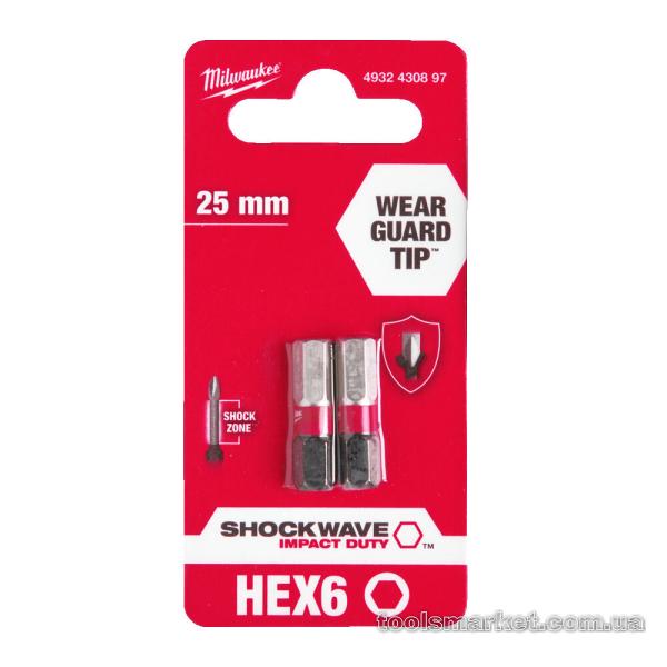→ Біта SHOCKWAVE MILWAUKEE, Hex6, 25мм, (2шт)
