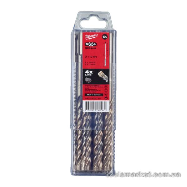 Бур SDS-PLUS MX4 MILWAUKEE, діаметр 12,0х160х100мм, (10шт)