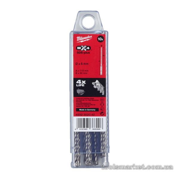 → Бур SDS-PLUS MX4 MILWAUKEE, діаметр 6,0х115х50мм, (10шт)