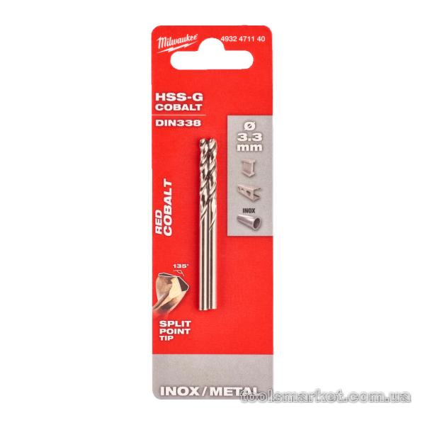 Свердло по металу HSS-Co MILWAUKEE, DIN338, Ø3,3х67х37мм, (2шт)