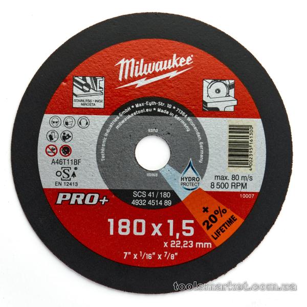 → Диск відрізний по металу MILWAUKEE, SCS41/180X1,5 PRO+, діаметр 180мм