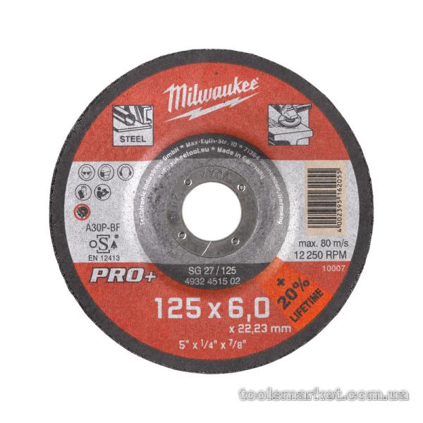→ Диск зачисний по металу MILWAUKEE, SG 27/125х6 PRO+, 125 мм