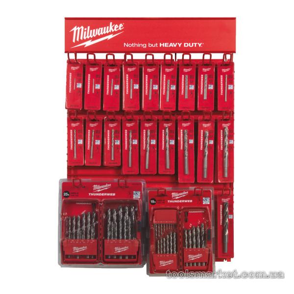 Дисплей Red Rack THUNDERWEB (1 шт) Комплектуючі дисплеї: 1. Дисплей/емблема/картка 1шт. 2. Євро-гак (короткий) 19 шт. 3. Євро-гак (довгий) 4 шт. 4. Набір талонів для повторного замовлення (10шт.) – 3уп. 5. Набір штрих-кодів для звірів HSS-G по металу – 1 шт. 6. Планограма для свердел HSS-G по металу – 1 шт. 7. Артикул для закака всього дисплея 4932352645