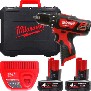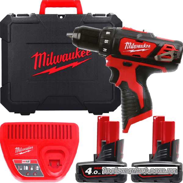 Дриль-шурупокрут з ударом акумуляторний MILWAUKEE, M12 BPD-202C (+ заряд.пристрій, 2 акум., HD кейс)