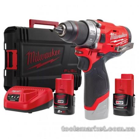 Дриль-шурупокрут з ударом акумуляторний MILWAUKEE, M12 FPDX-202X, 37Нм, (+ заряд.пристрій, 2 акум., HD кейс)