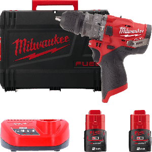 → Дриль-шурупокрут з ударом акумуляторний MILWAUKEE, M12 FPDX-202X, 37Нм, (+ заряд.пристрій, 2 акум., HD кейс)