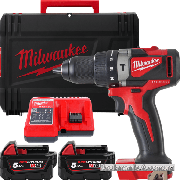 Дриль-шурупокрут з ударом акумуляторний MILWAUKEE, M18 BLPD2-502X, 82Нм (+ заряд.пристрій, 2 акум.Х