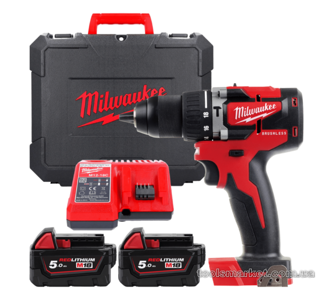 → Дриль-шуруповерт акумуляторна ударна M18CBLPD-502C крут.мом. 60Нм MILWAUKEE