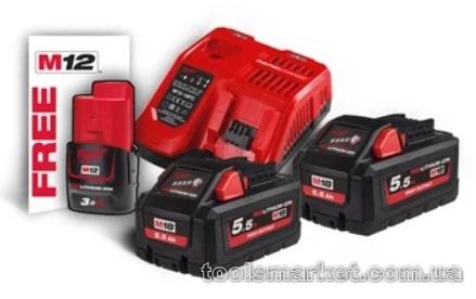 Енергокомплект акумуляторний Li-Ion MILWAUKEE, M18 HNRG-552 (+заряд.пристрій, 2акум. M18 HB5.5(5,5Ar