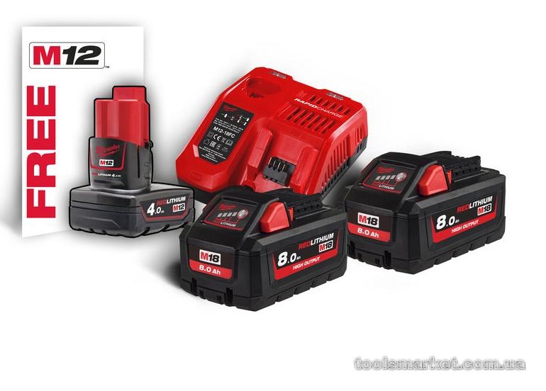 Енергокомплект акумуляторний Li-Ion MILWAUKEE, M18 HNRG-802 (+заряд.пристрій, 2 акум. M18 HB8(8Аг),