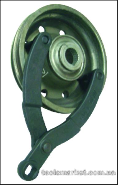 - Благодаря Y-образной конструкции и раздвижным захватам, фиксатор может применяться для любого типа и размеров приводного шкива.