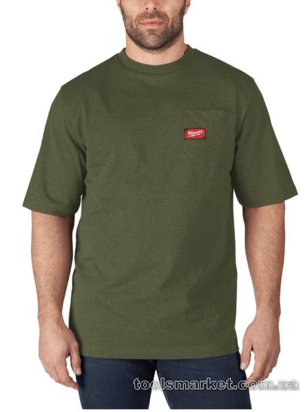 Футболка MILWAUKEE, WTSS з карманом та коротким рукавом, зелена, розмір XL