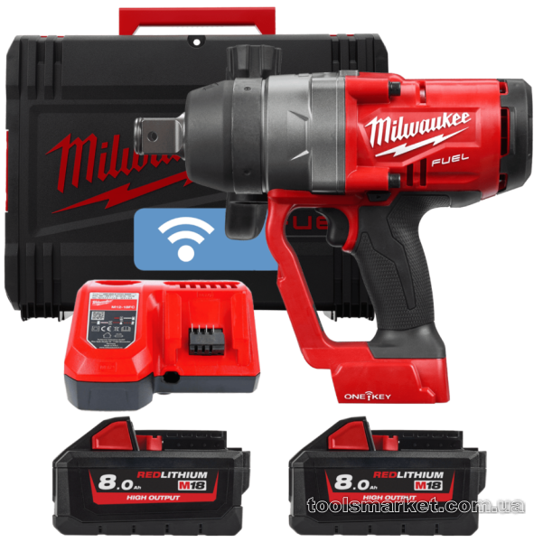 Гайкокрут високомоментний акумуляторний MILWAUKEE 1"(2400 Нм) M18 FUEL з фіксацією кільцем ONE-KEY (+ заряд.пристрій, 2 акум., H