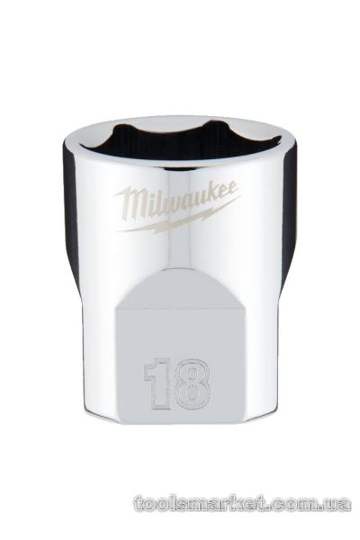 Головка торцева хромована ⅜″ 6гр. MILWAUKEE, 18мм