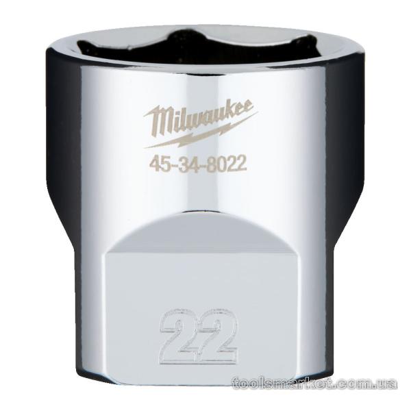 Головка торцева хромована ⅜″ 6гр. MILWAUKEE, 22мм