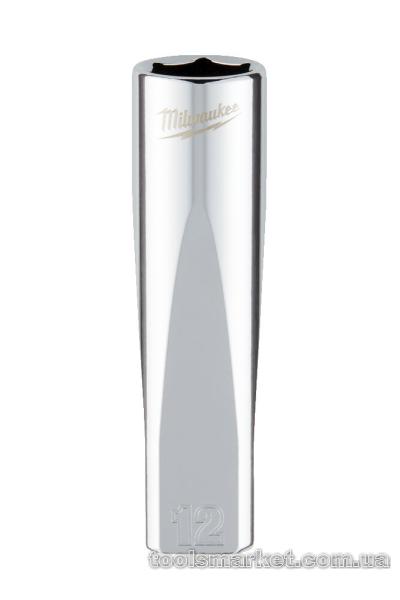 Головка торцева хромована ⅜″ 6гр. MILWAUKEE, подовжена, 12мм