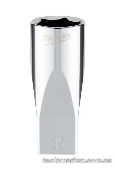 → Головка торцева хромована ¼” 6гр. MILWAUKEE, подовжена, 15мм