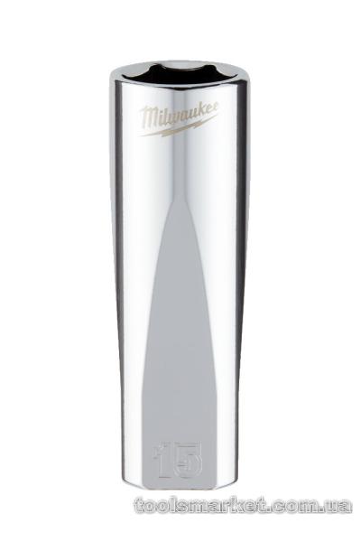 Головка торцева хромована ⅜″ 6гр. MILWAUKEE, подовжена, 15мм