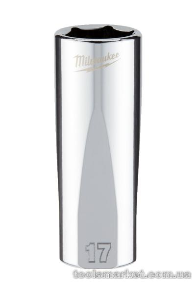→ Головка торцева хромована ⅜″ 6гр. MILWAUKEE, подовжена, 17мм