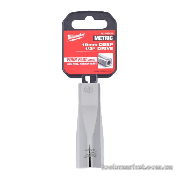 → Головка торцева хромована ½” 6гр. MILWAUKEE, подовжена, 19мм