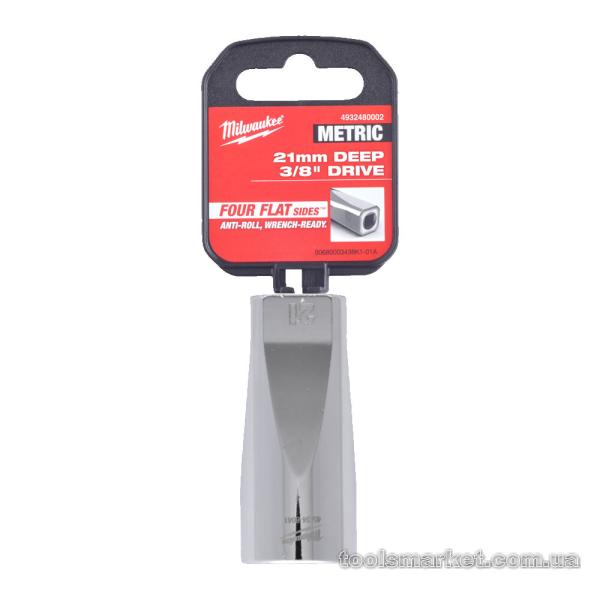 → Головка торцева хромована ⅜″ 6гр. MILWAUKEE, подовжена, 21мм