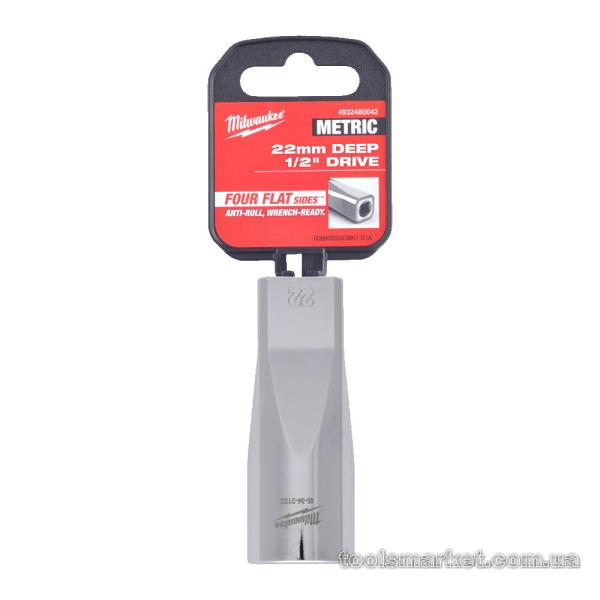 → Головка торцева хромована ½” 6гр. MILWAUKEE, подовжена, 22мм