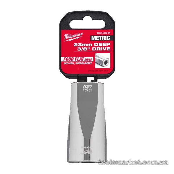 Головка торцева хромована ⅜″ 6гр. MILWAUKEE, подовжена, 23мм