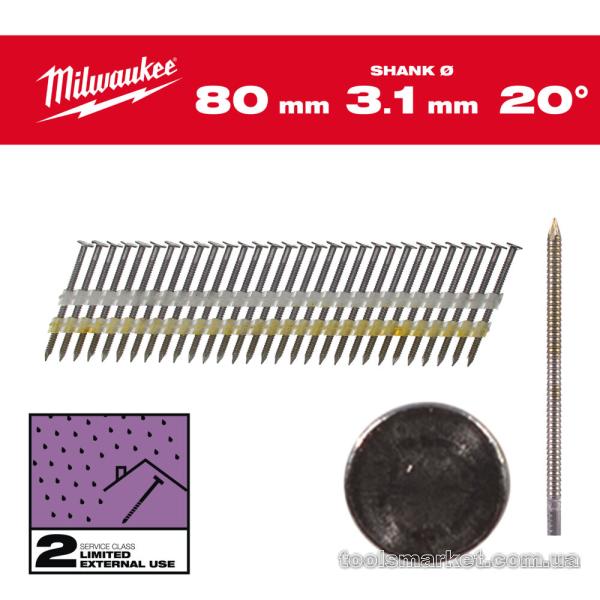 Цвяхи з кільцевою накаткой и полукруглой головой 20/75 мм RS для M18 FFN21 (2000 шт) MILWAUKEE