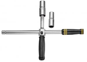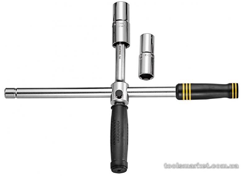 - Регулируемое основание позволяет выдвинуть стержень до 380 мм для увеличения значения крутящего момента или установить головку по центру для быстрого вращения.