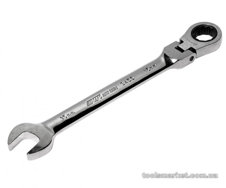 Ключ рожково-накидной шарнирный с трещоткой 15мм
