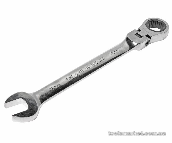 Ключ рожково-накидной шарнирный с трещоткой 16мм