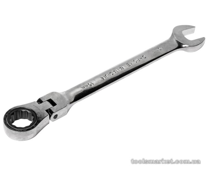 Ключ рожково-накидной шарнирный с трещоткой 15мм