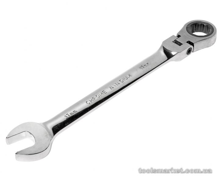 Ключ рожково-накидной шарнирный с трещоткой 17мм