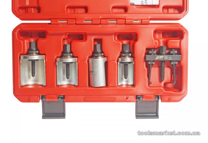 - В набор входят 4 регулируемых и один универсальный съемник, которые предназначены для демонтажа рычагов стеклоочистителя.