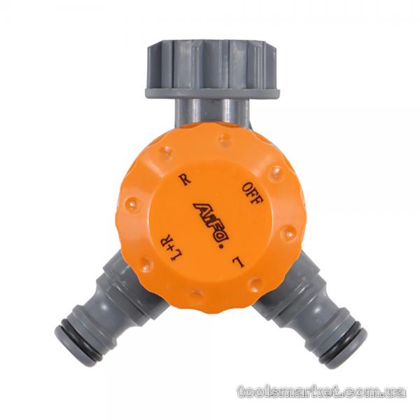 Кран распределительный двойной с резьбой на кран ¾" Flora (500241z) используется для распределения орошения ближайших и дальних площадей.