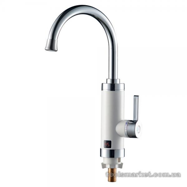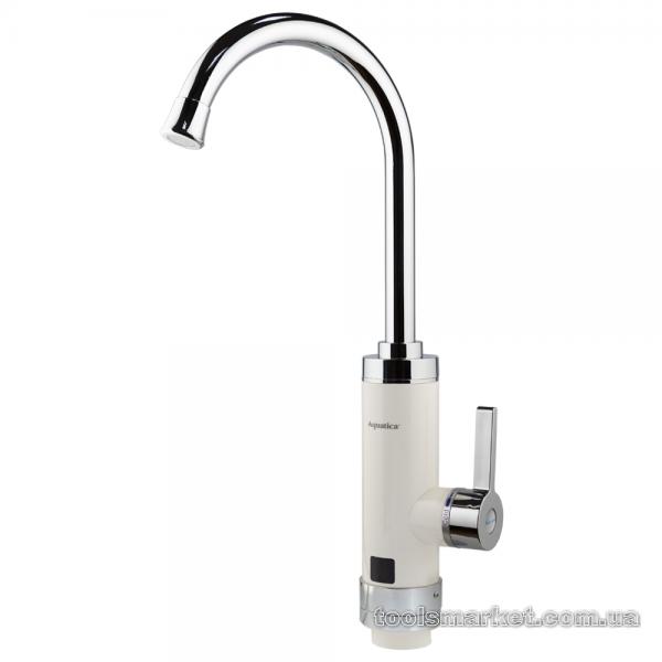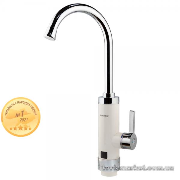 Кран-водонагрівач проточний HZ 3.0кВт 0.4-5бар для кухні гусак вухо на гайці (W) AQUATICA (HZ-6B143W)