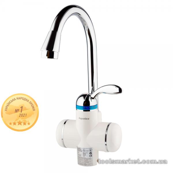 Кран-водонагрівач проточний LZ 3.0кВт 0.4-5бар для кухні гусак вухо на гайці AQUATICA (LZ-6B111W)