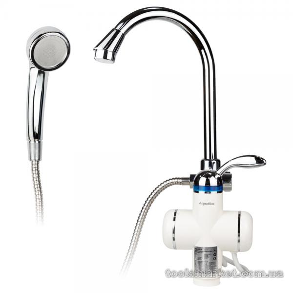 Кран-водонагрівач проточний LZ 3.0кВт 0.4-5бар для ванни гусак вухо на гайці AQUATICA (LZ-6C111W)