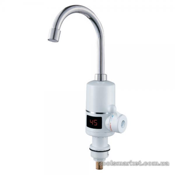 Кран-водонагрівач проточний NZ 3.0кВт 0.4-5бар для кухні гусак вухо на гайці з дисплеєм AQUATICA (NZ-6B142W)