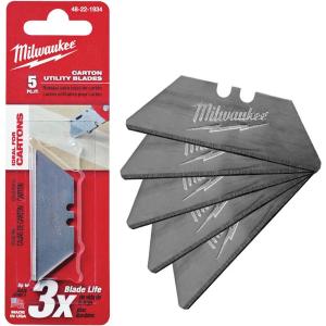 Леза змінні для різання картону Milwaukee (5шт) особливості: Загальна довжина – 62 мм. Висота – 19 мм. В упаковці – 5 шт. Мікро-карбідне покриття для збільшення терміну служби. Оптимальна геометрія леза – закруглена. Екстремальний кут заточування для чистого різання. Полотна захищені та доступні у пластиковому боксі.