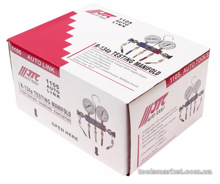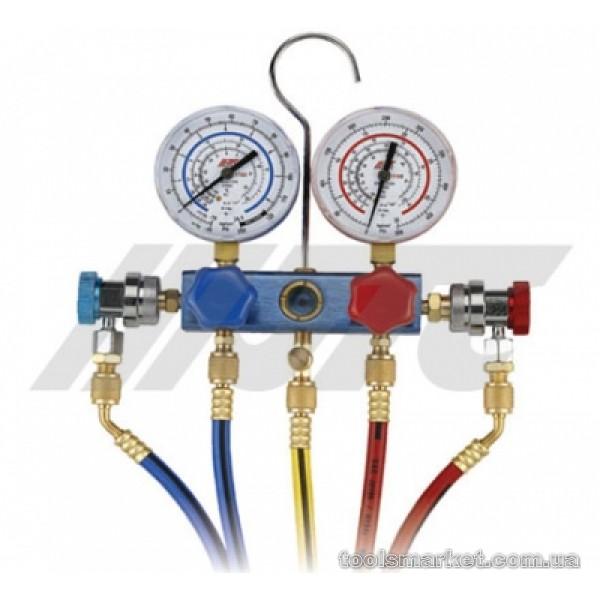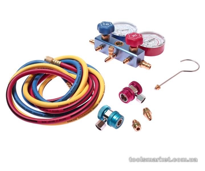 · Манометрический коллектор для хладогента R-134a, оснащенный смотровым стеклом и 3-мя цветными шлангами длиной