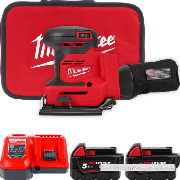 Машина шліфувальна вібраційна акумуляторна MILWAUKEE, M18 BQSS-502B (+зар.пр., 2 акум.Х5Аг, сумка)