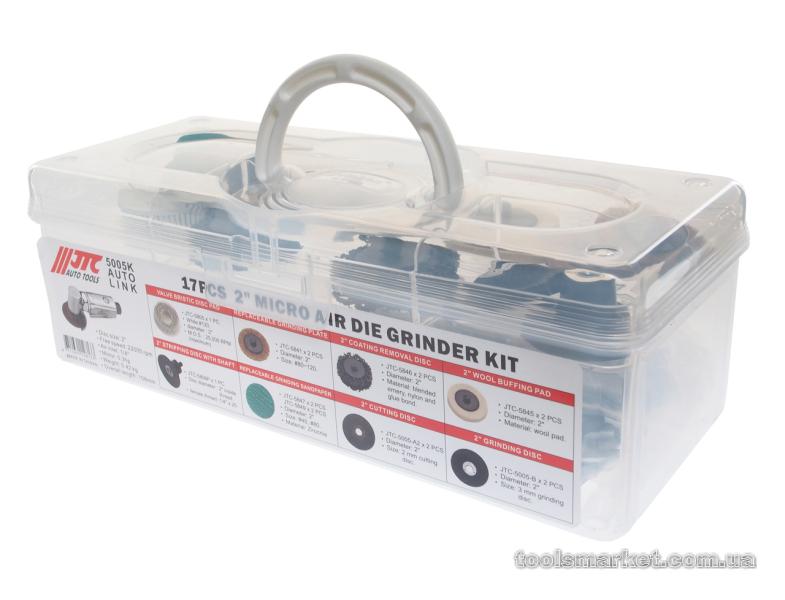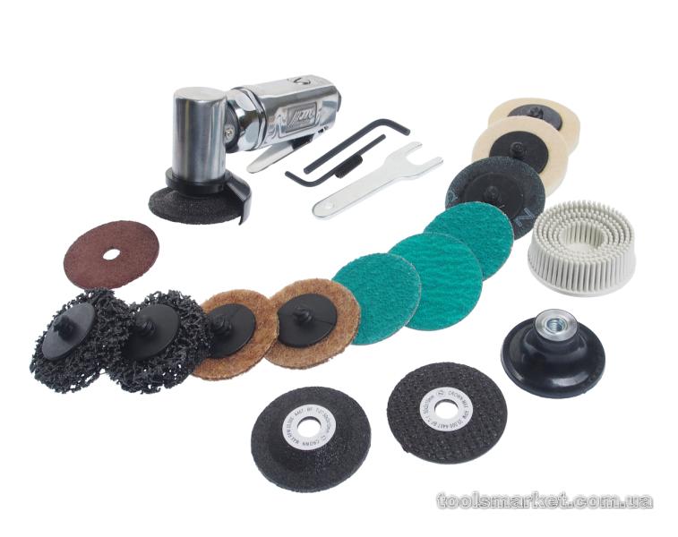 Машинка шлифовальная пневматическая 2" с комплектом аксессуаров 17ед.