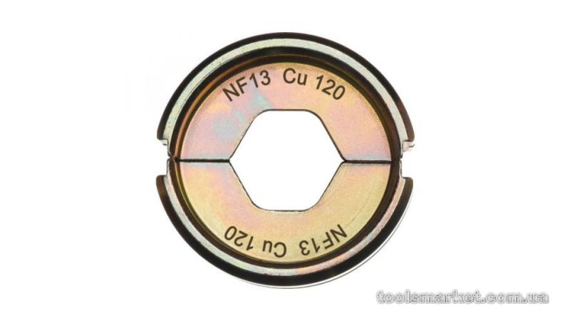 Матриця NF13 Cu120 Матриця Milwaukee NF13 – сумісна з гідравлічним інструментом для опресування подвійних кабельних наконечників Milwaukee Force Logic.