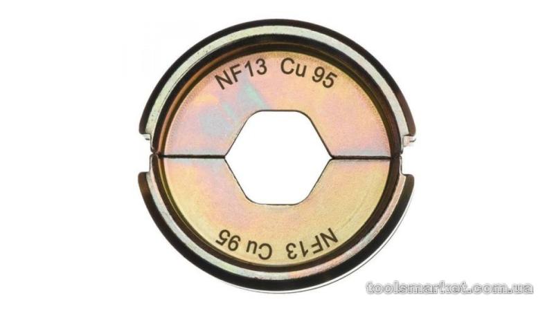 Матриця NF13 Cu95 Матриця Milwaukee NF13 – сумісна з гідравлічним інструментом для опресування подвійних кабельних наконечників Milwaukee Force Logic.