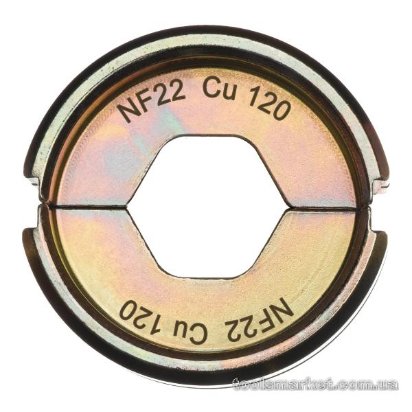 Матриця NF22 Cu 120 NF C 20-130 для мідних кабельних наконечників. Комплект поставки Матриця NF22 Cu 120 - 1 шт. Поставляється у картонній коробці Суббренд FORCE LOGIC Кількість (шт) 1 Підходить для M18 HCCT Розмір затиску (мм²) 120 Форма Hex Клеймо 120